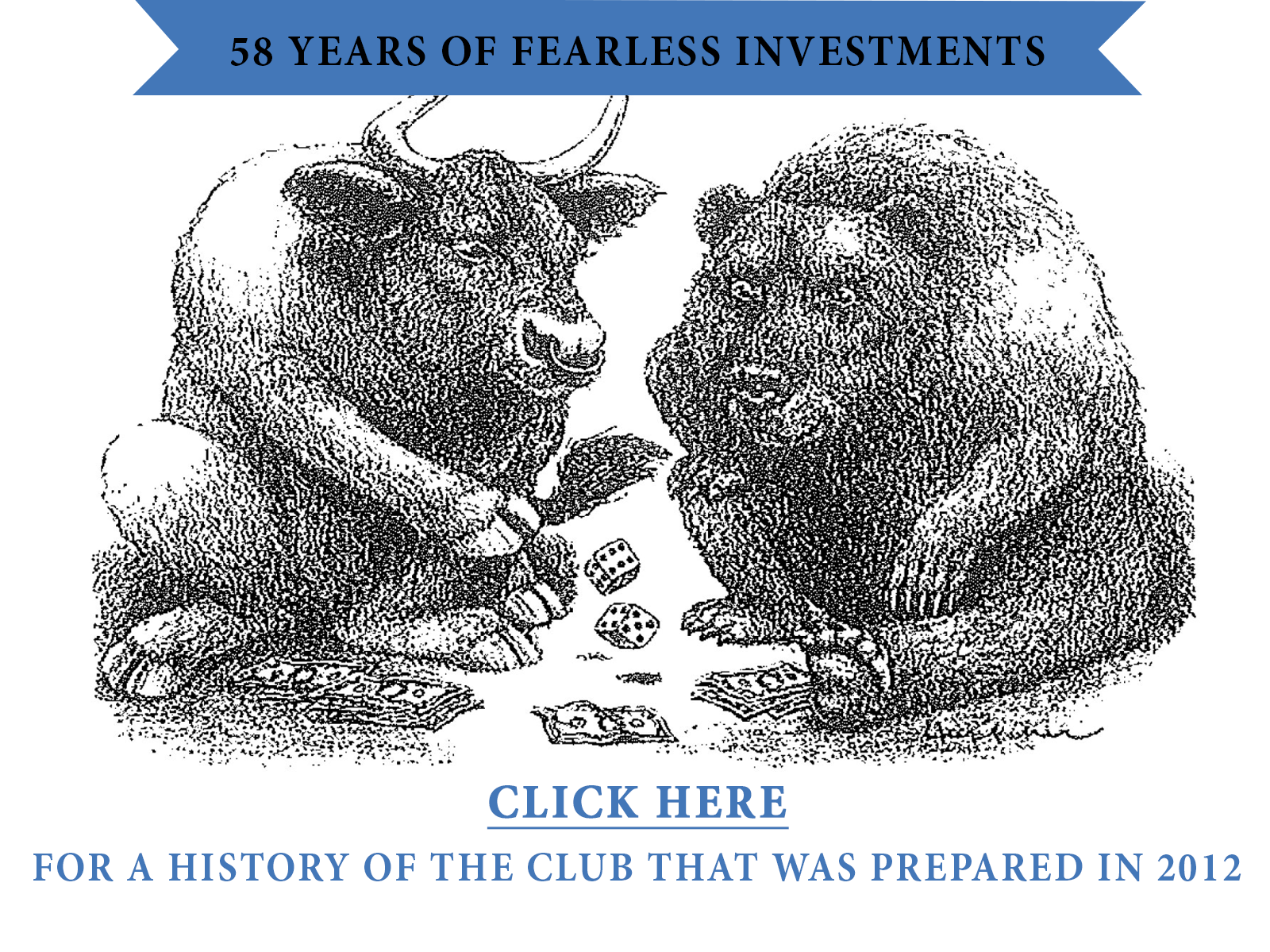 The club's very first investment was buying $250 worth of Delta Airlines stock in May 1954. The Bulls & Bears continue to invest in horses, football teams, and various other exciting endeavors.